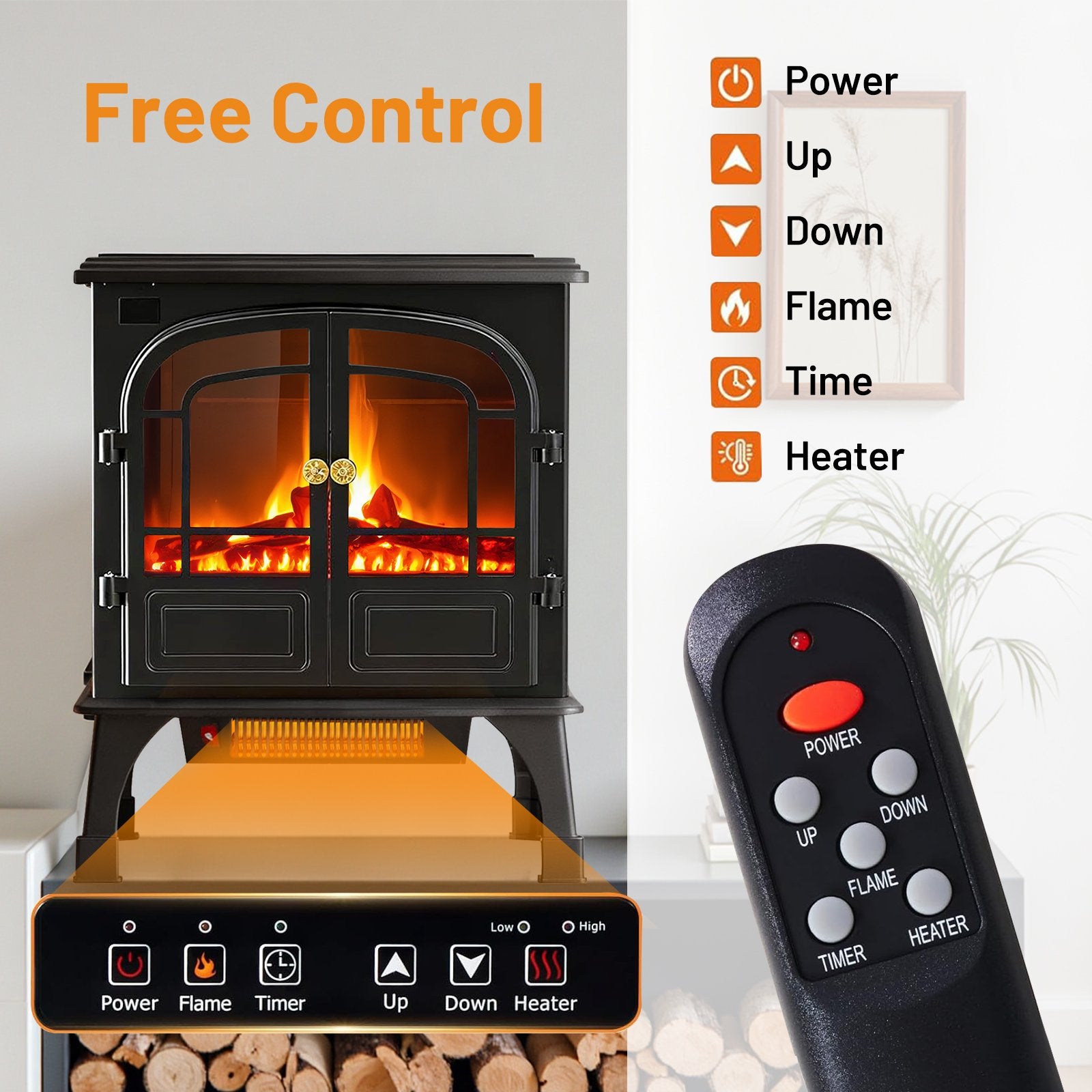 Realistic 3D Flame Effect: Create an instant cozy atmosphere with advanced flame technology. The adjustable flame effect mimics the flickering glow of a real fire, setting the perfect ambiance for relaxing, reading, or entertaining.