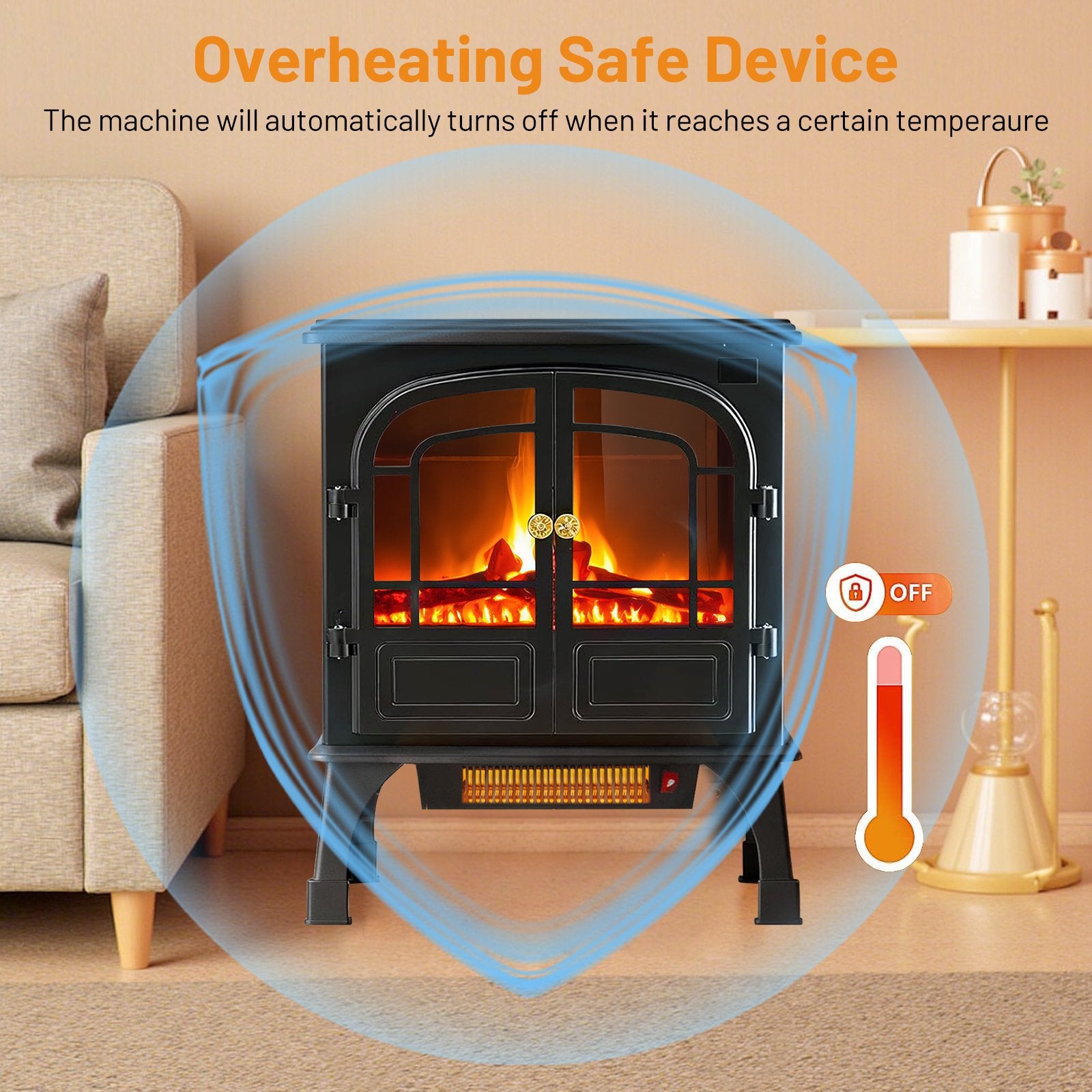 Advanced Safety Features: Built with safety in mind, the fireplace includes automatic overheat protection. It shuts off automatically if it becomes too hot, ensuring peace of mind for households with children or pets.