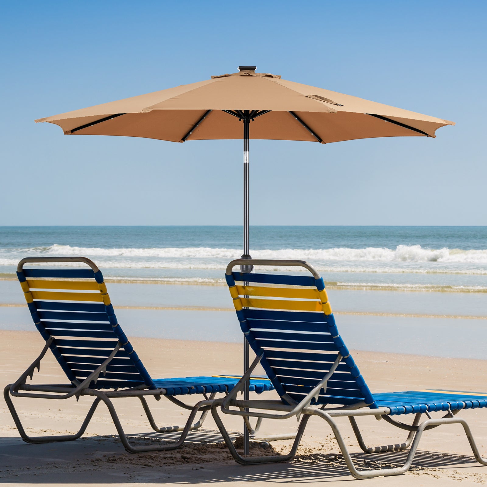 MyDepot Upgrade 10 FT LED Outdoor Patio Deck Umbrella with 32 Solar Lights, Tilt & Crank, UV-Resistant and Waterproof Table Umbrella for Pool, Beach, Market and Restaurant